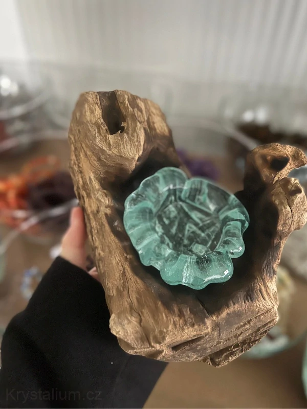 Dekorace je ručně vyráběná,foukaného z recklovatelného skla a kořenů dřeva Gamal.