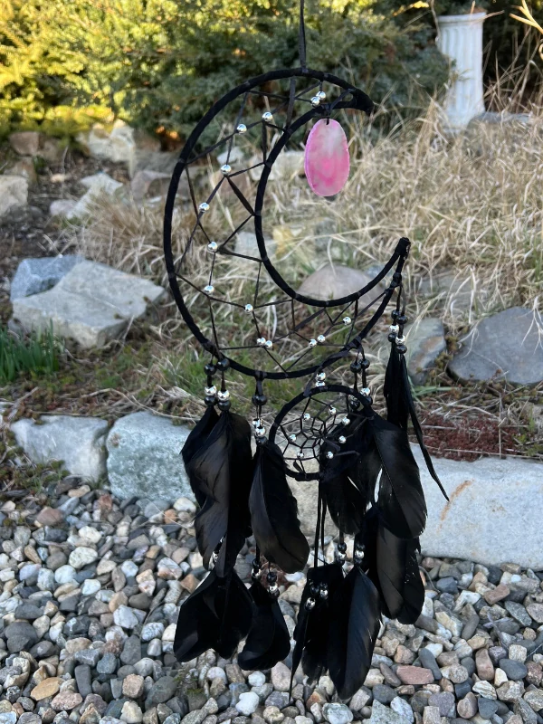 LAPAČ SNŮ ČERNÝ s barveným ACHÁTEM