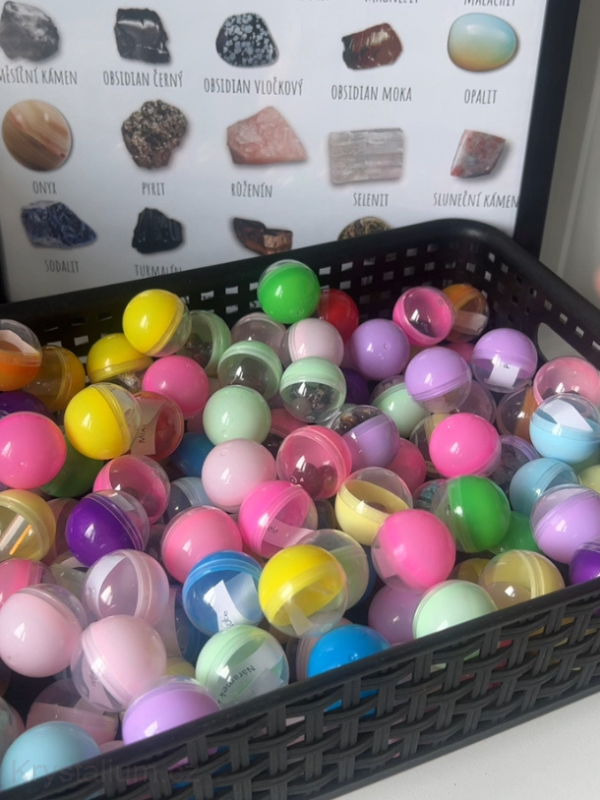 V klasické kuličce naleznete produkty, například menší vyřezávaný tvar, náramek, minerál atd.